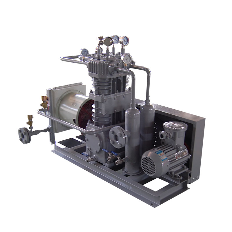 環(huán)氧乙烷壓縮機(jī)是我公司新型產(chǎn)品,它集壓縮機(jī)、氣液分離器、安全閥冷卻器、電動(dòng)機(jī)等為一體,成一完整的機(jī)組。具有功能多、體積小、重量輕、功率小、運(yùn)行平穩(wěn)可靠等特點(diǎn),并有良好的安全性能。由于采用獨(dú)特的無油潤滑設(shè)計(jì),氣缸內(nèi)無需用油潤滑,因而不會(huì)對介質(zhì)造成污染,使被輸送物質(zhì)保持純凈。本機(jī)設(shè)計(jì)成機(jī)組型式,許多管線上的附件都安裝在機(jī)組上,省卻了氣液分離器、穩(wěn)壓罐、安全閥、進(jìn)氣過濾器等,減小了機(jī)房的面積,減少了操作維護(hù)工作量,節(jié)省了投資。